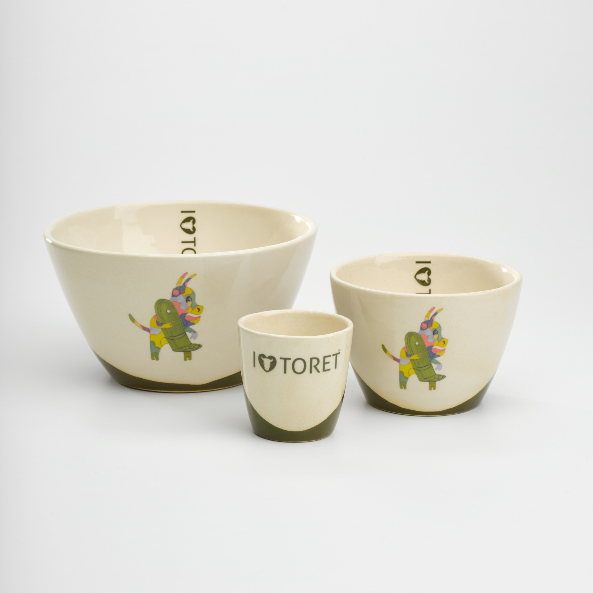 Un set di tre terrine artigianali che portano in tavola tutto l'amore per la nostra città e per i Toret. In ceramica avorio e verde Toret, queste ciotole nidificabili sono perfette per servire stuzzichini o salse. Sono decorate con disegni originali realizzati interamente a mano dai ragazzi di L'Arco Lab della Cooperativa L'Arcobaleno. Acquistando questo set, disponibile in quattro varianti grafiche, sostieni un progetto di inclusione sociale e un artigianato etico e locale. Un'idea regalo speciale e solidale.